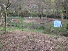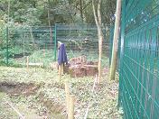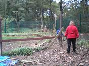 Saturday 25th July 2009 A lovely morning just right for working outside. Some of the volunteers cut back tree branches overhanging some of the paths on the further side of the river opposite to Pets Corner. Some dug soil away from the trunks of trees so that the roots wouldn’t be encouraged to grow upwards, and other volunteers repaired fencing which had been pulled off leaving a large hole in the fence.