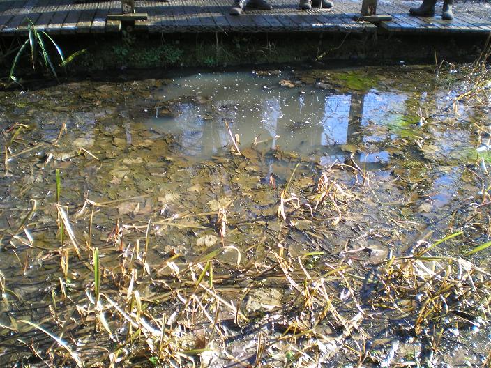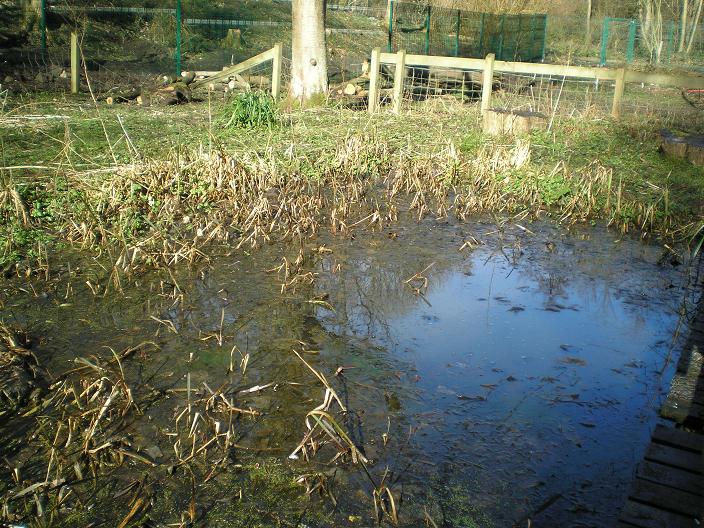 Thursday 5th March 2009 This morning we were again in the Nature Area. Tidying up the path to the small pool and clearing away all of the loose twigs and small bits of branch left over from the chipping. We want to make it tidy and accessible in preparation for the NERAG (North East Reptile and Amphibian Group) who are coming tonight to look at the small pond. At one point one of us saw a frog disappear into the pond. |