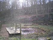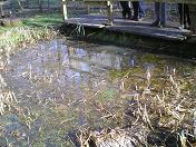 Friday 20th March 2009 First job was to go up to the waterfall and picnic area and clear away rubbish and debris both in the river and lying on the ground. A particular tricky bit was to remove a bright orange plastic bag which had caught on the rocks right in the middle of the waterfall! We did succeed and the waterfall looks so much better for it. After this we worked our way downstream clearing away litter and rubbish. At the pond very near to the Fishermans lodge we attempted to clear out the leaves from the pool. This has to be done on a regular basis as the decaying leaves turn the water white and very smelly. About 6 wheelbarrow loads of rotting matter was lifted from the bed of the pond and removed. Once the pond has settled again we hope the water will be much clearer. The afternoon is dedicated to repairing fences.