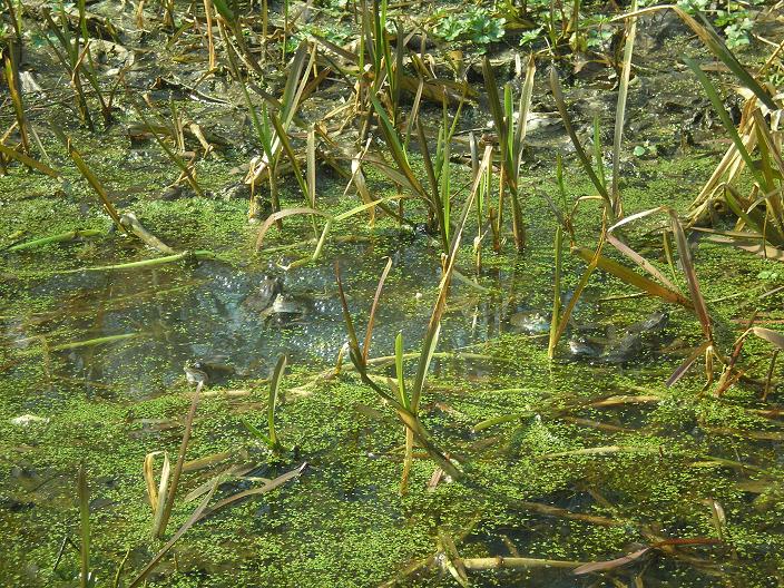 rewarded by the sight of a group of frogs spawning in the warm spring sunshine.