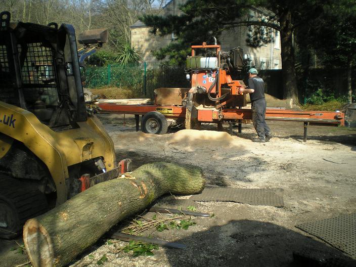 that have outgrown their location. These are being cut into planks using a large bandsaw and we intend to use some