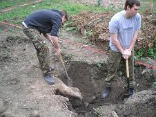 Monday 6th April 2009 We worked in the Nature Area today, digging out old tree stumps, moving fallen branches and taking huge stones from the area for our new dipping pond. Then we ‘filled in’ all of the holes made by these endeavours to prepare the area for a ‘pond dipping’ session to be held on Good Friday.
