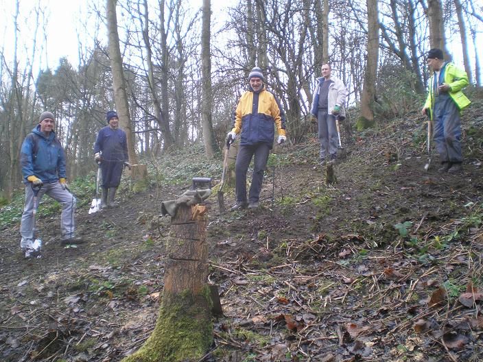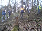 Sunday 26th January 2009 We spent the morning stripping ivy off the base of trees identified in the survey for the big lottery. This was tough work at times as some of the trees were on steep slopes and some of the ivy had grown over 6cm in diameter!